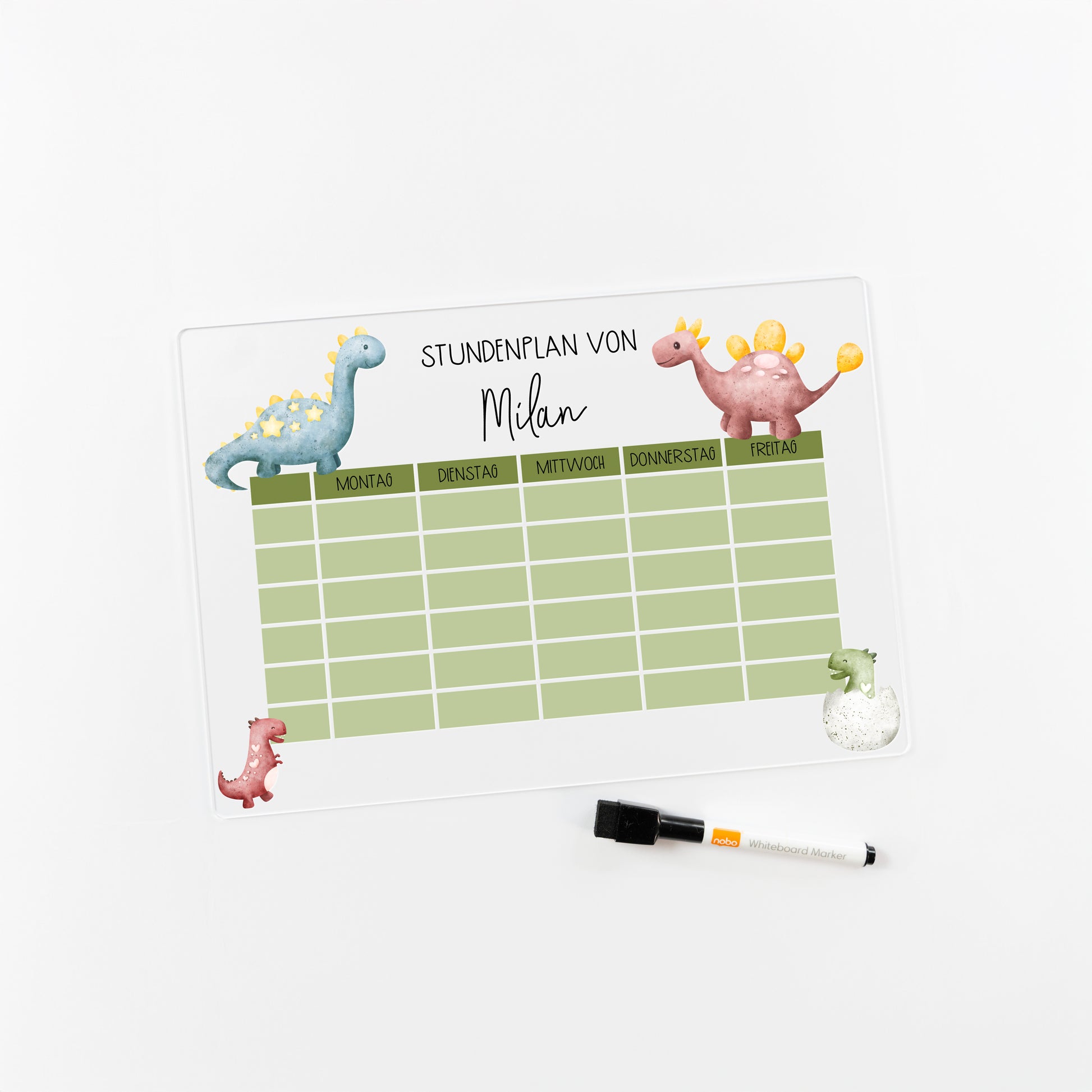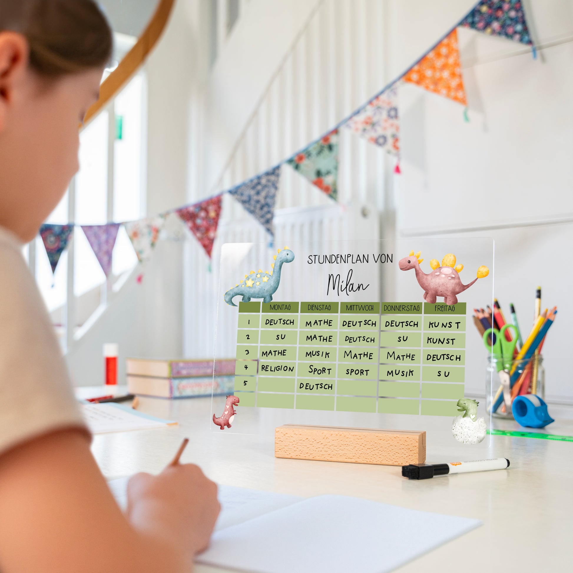 Stundenplan aus Acryl – personalisiert mit Namen (Dino 1)