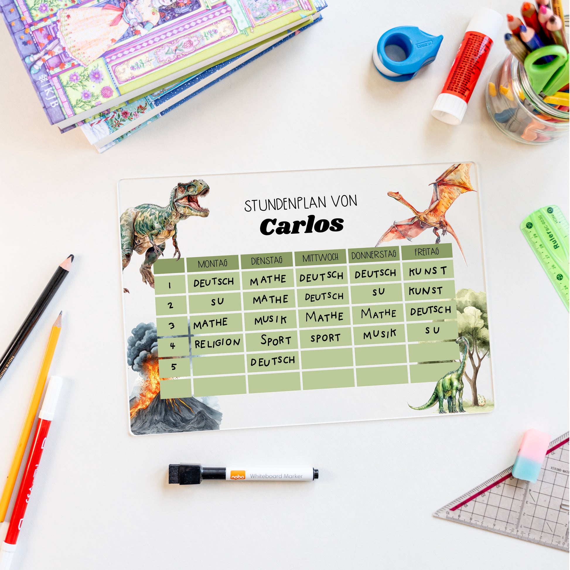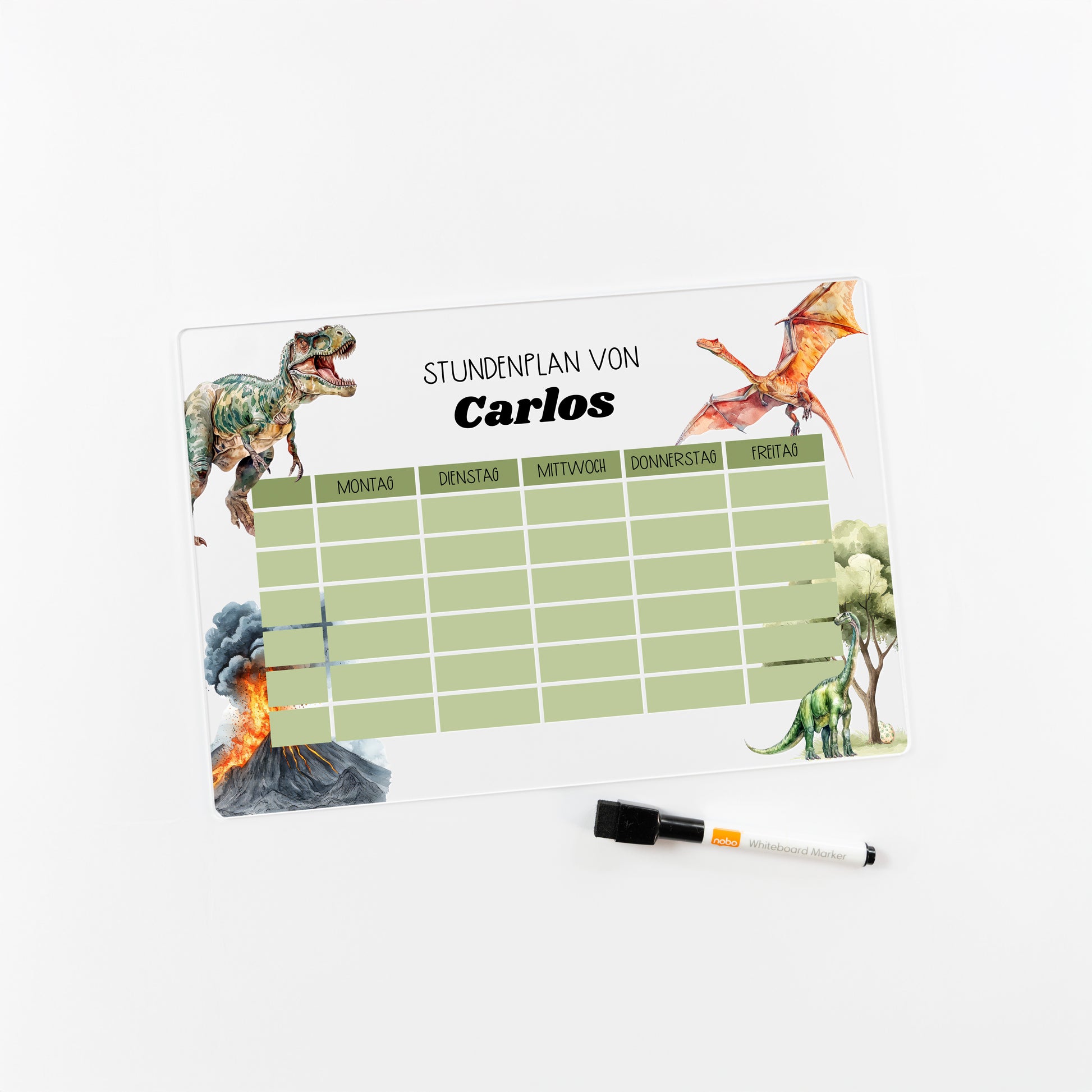 Stundenplan aus Acryl – personalisiert mit Namen (Dino 2)