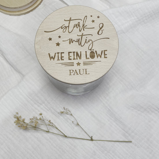 Vorratsglas stark und mutig wie ein Löwe + Name personalisiert